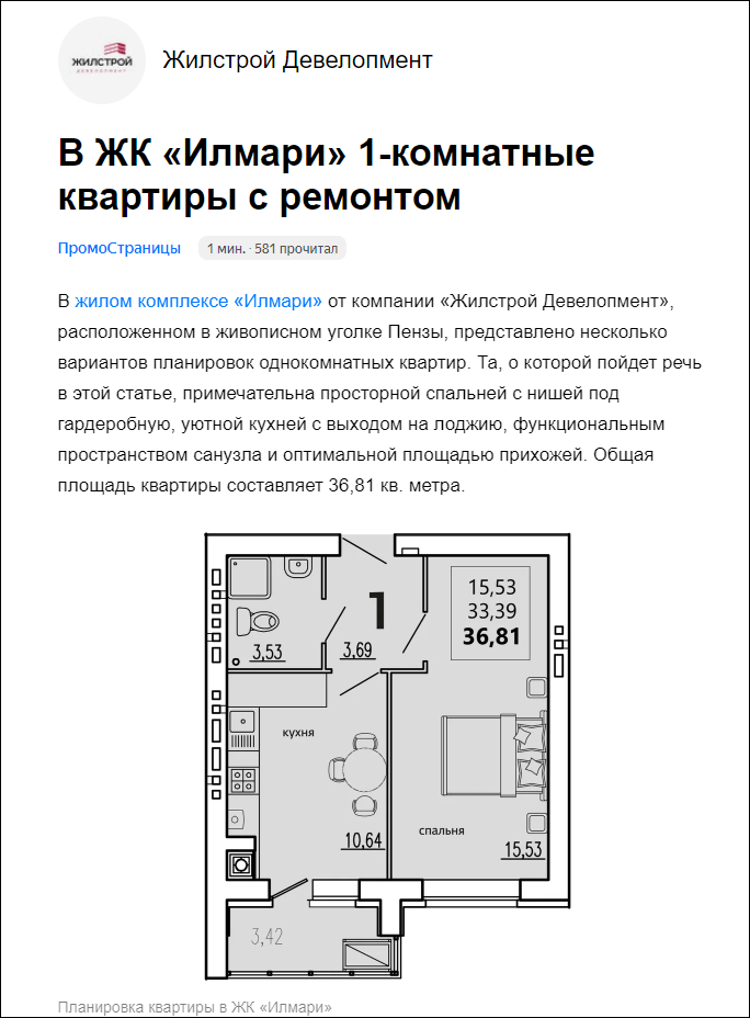 ПромоСтраницы актуальны для рынка недвижимости, так как позволяют глубже погружаться в описание объекта и создавать позитивное отношение к бренду. Публикации на таких страницах увеличивают осведомлённость и привлекают лояльных клиентов.