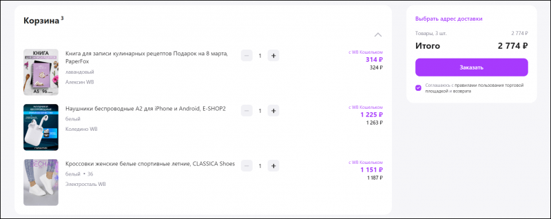Аналогичная схема действует и для корзины. Обозначайте более предпочтительный шаг: «-» убрать товар из корзины (незаметный светло-серый цвет), «+» добавить дополнительный товар (контрастный черный), привлекайте внимание к кнопкам целевого действия.