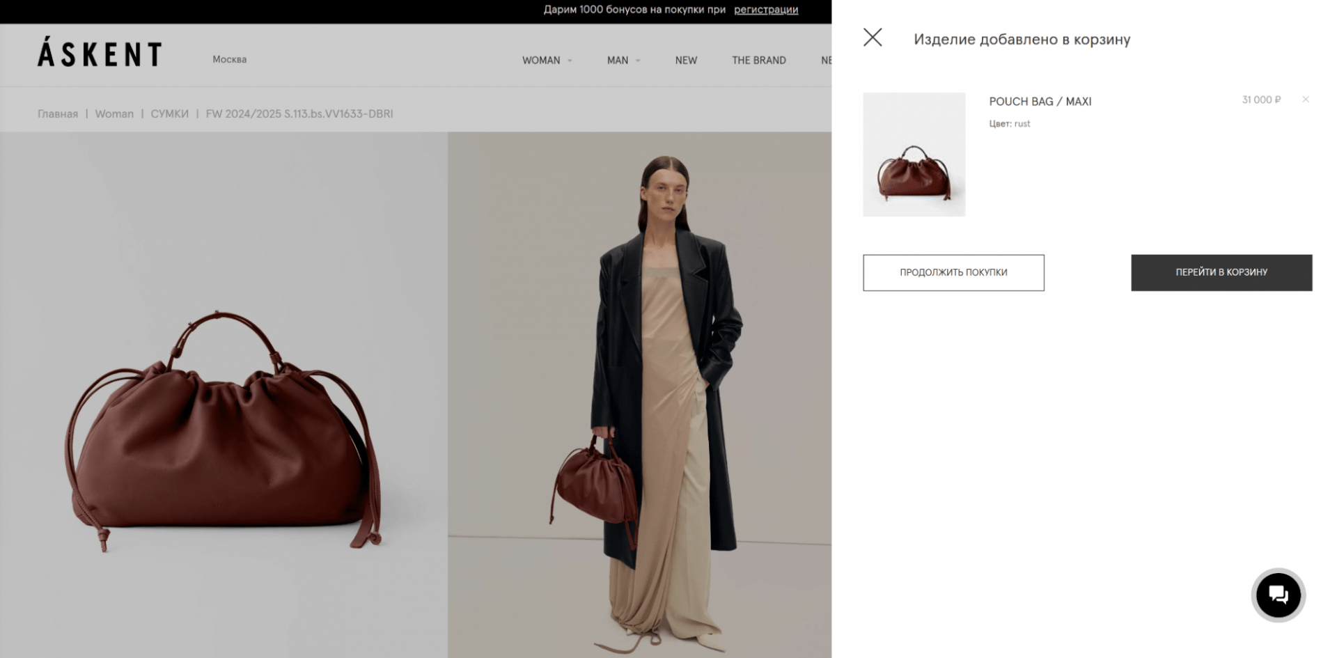 Реализованы формы для подписки на уведомления о поступлении товара, а также динамические элементы, позволяющие пользователю быстро переходить к оформлению заказа (например, форма с выбором: перейти в корзину или продолжить покупки).
