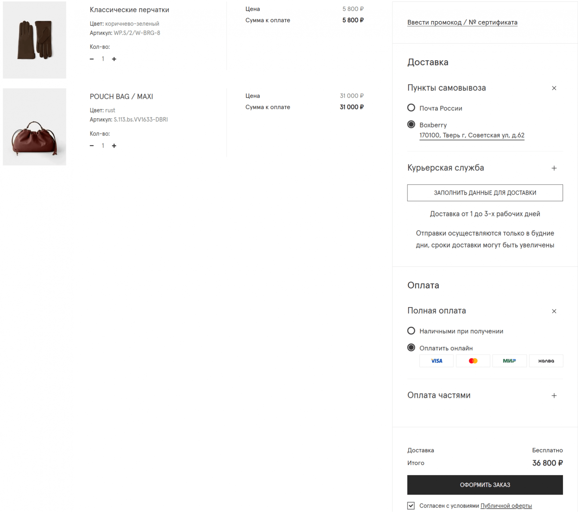 - улучшение пользовательских процессов в каталоге товаров и оформление заказа;