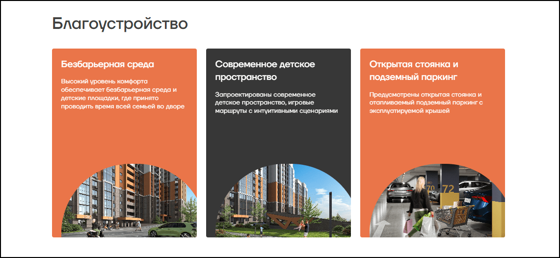 - благоустройство в карточках,