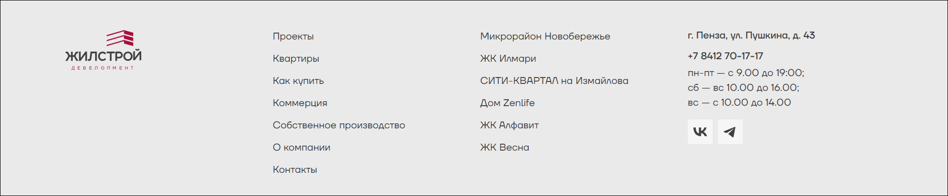 В этот же период девелопер отказался от разработки отдельных лендингов под каждый проект, и мы приступили к разработке корпоративного сайта, на котором оказалась собрана информация обо всех проектах: https://жилстройдевелопмент.рф/