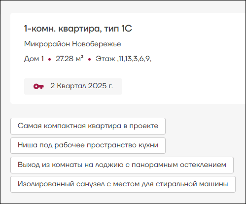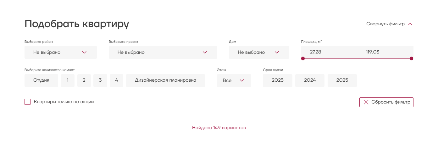 Отдельно хотелось бы отметить функционал каталога квартир.