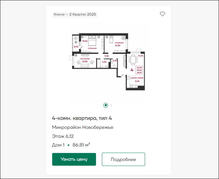 Воспользовавшись фильтром по районам/проектам/домам/площади квартиры и пр. пользователь рассчитывает увидеть конкретный список квартир, подходящих под его запросы. Однако! Проанализировав сайты конкурентов, мы выявили тенденцию повторения карточек квартир, имеющих одинаковую планировку, но расположенных на разных этажах.
