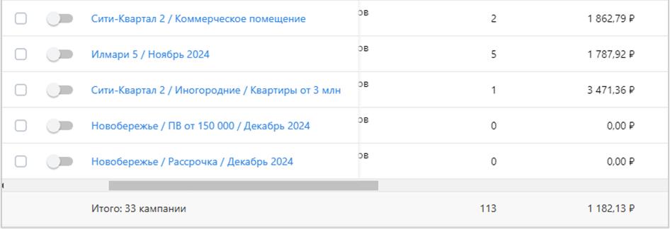 - Созданы отдельные аккаунты в Яндекс.Директ для продвижения разных проектов + аккаунт для бренда самого застройщика + аккаунт для продвижения коммерческой недвижимости.