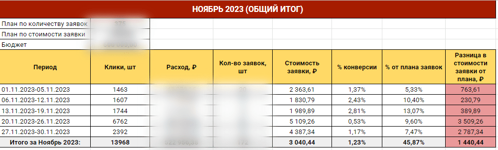 - Начали вести ежедневную отчетность по расходам и количеству лидов для отслеживания динамики и более оперативного реагирования при возникновении каких-то внештатных ситуаций.