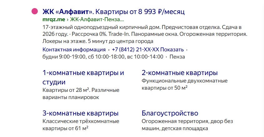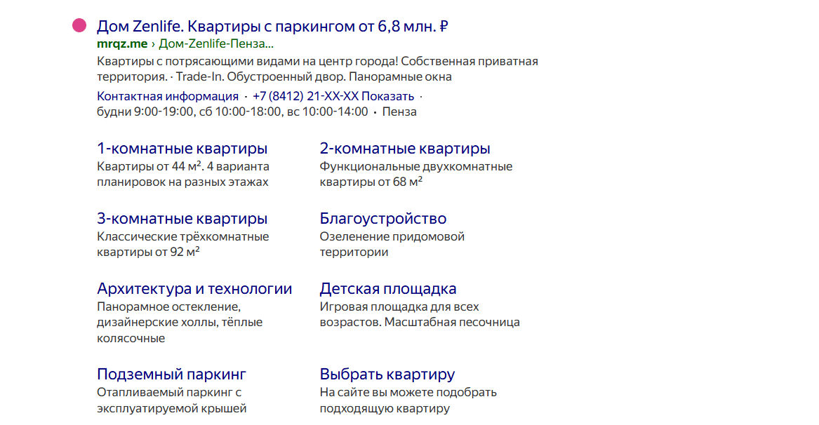 - Для каждого проекта проработана семантика, отвечающая классу жилья, локации и бюджету проекта.