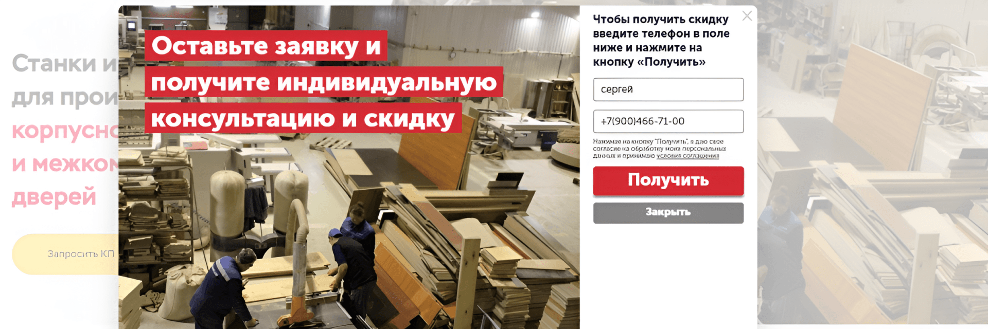 Например, уже на первом экране на главной странице пользователь понимает какое оборудование продаёт компания, и кому оно подойдёт. Также есть возможность сразу запросить коммерческое предложение, заказать звонок или получить спецпредложение.