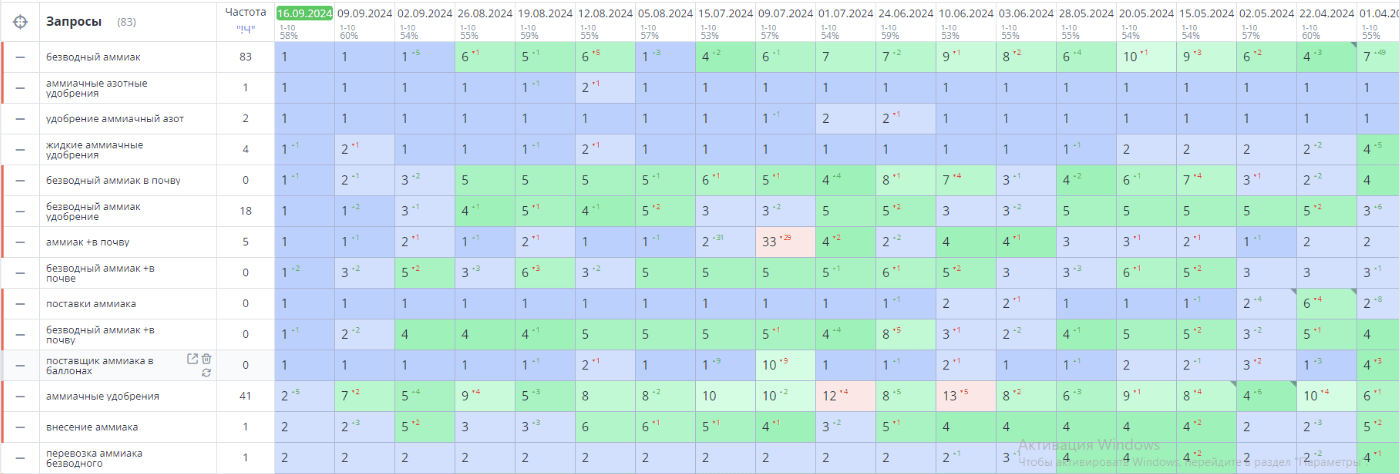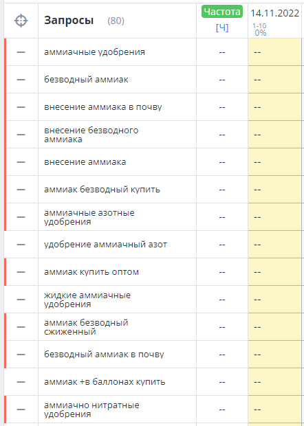 В данном случае мы имеем дело с запросом смешанного интента, т. е. прямо не относящимся ни к коммерческому, ни к информационному типу. Также анализ показал, что аналогичные коммерческие сайты, занимающиеся внесением аммиака, в качестве целевой страницы используют следующие страницы.