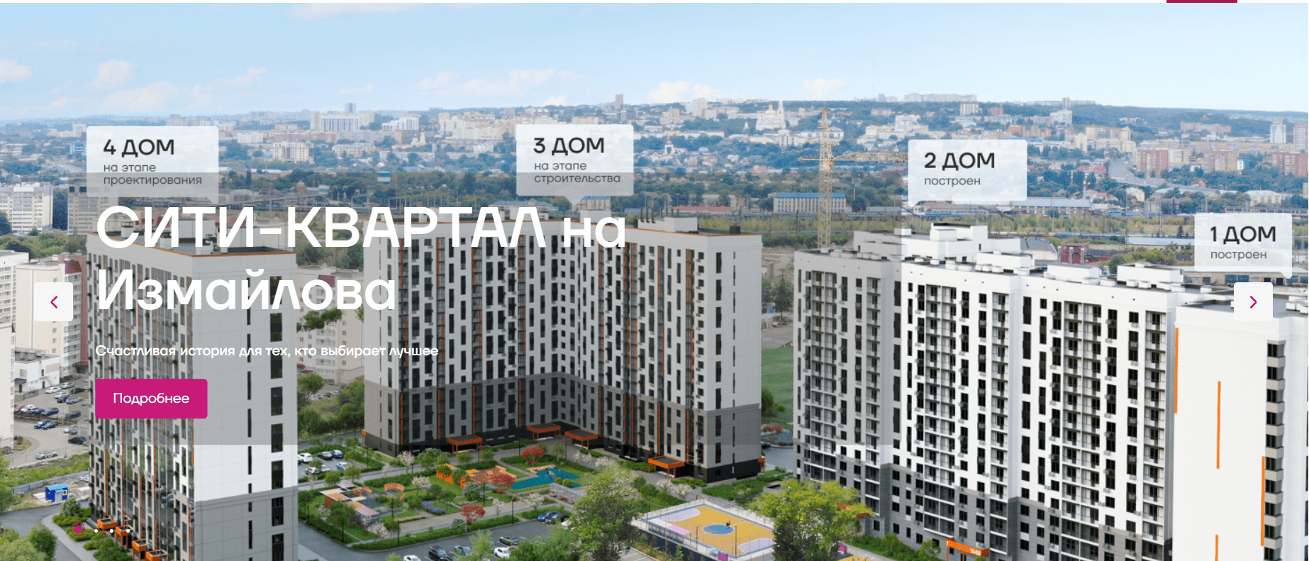 Слоган Сити-Квартала на Измайлова – «Я выбираю счастье». Поэтому при разработке сайта акцент был сделан на удобствах, которые получают будущие жители нового ЖК. Также для пользователей на сайте разработан подробный блок со всеми вариантами планировок и можно подобрать наиболее подходящую.