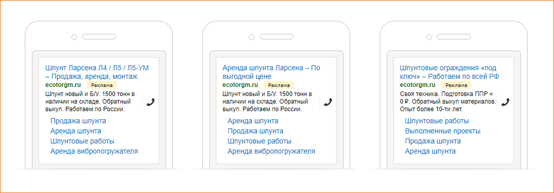 - Рекламные объявления были заполнены не по-максимуму и зачастую были нерелевантными тем ключевым словам, с которыми работали в связке.