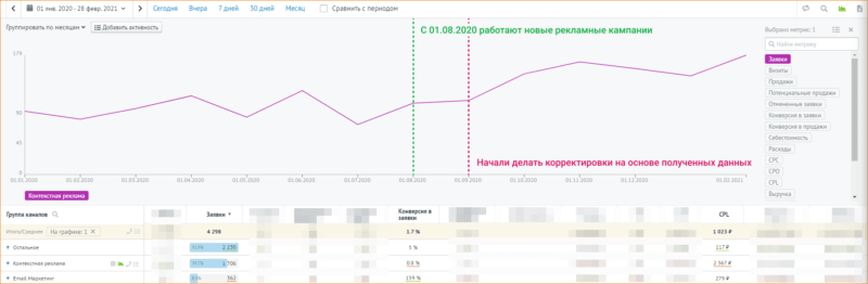 Новые рекламные кампании явно нуждались в корректировках и, проанализировав данные за 2 месяца, мы сделали следующее.