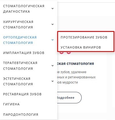 После того, как мы получили паттерн структуры и собрали семантическое ядро проекта, мы внедрили новые страницы на сайт. Раздел «Услуги» стал выглядеть так.