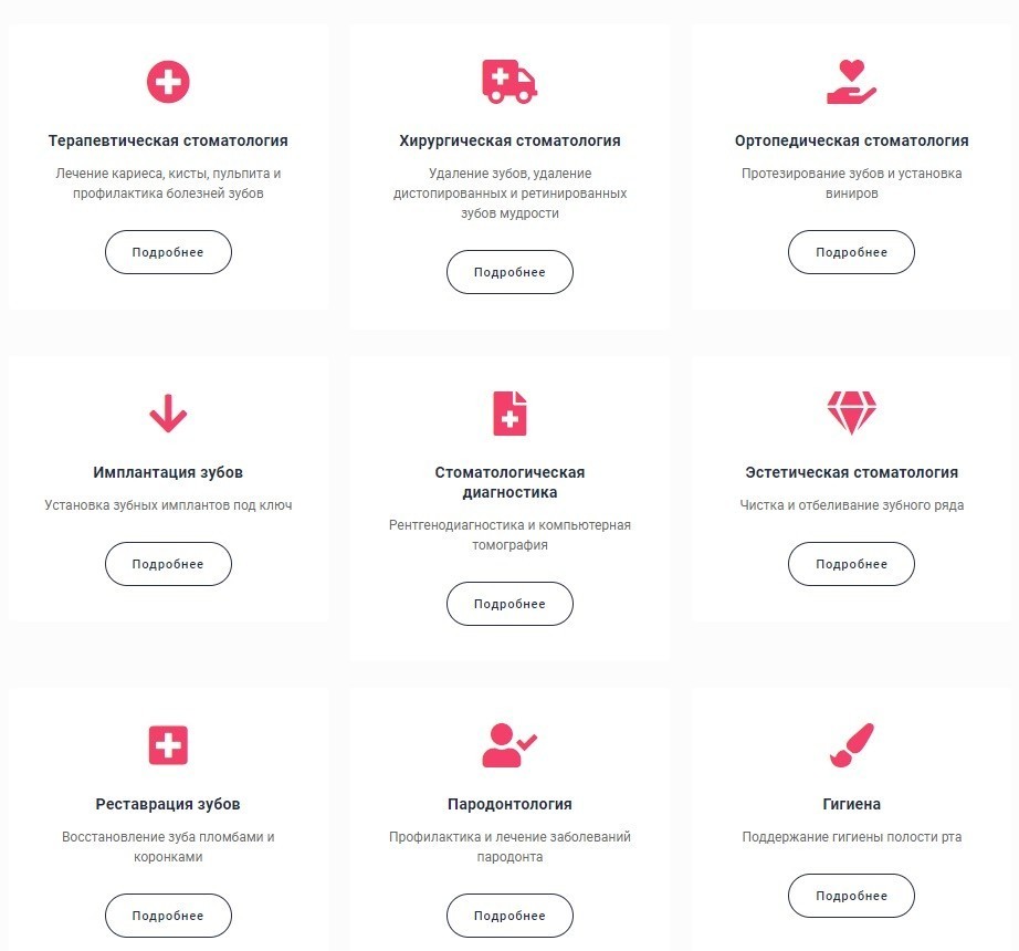 Подобная разбивка хорошо имитирует структуру не только конкурентов из числа частных стоматологий, но и структуру сайтов-агрегаторов, что позволяет облегчить конкуренцию с ними. Далее мы покажем, как это сработало.