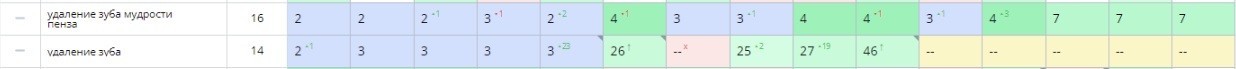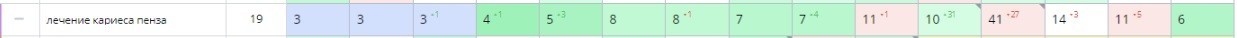 А это промежуточные итоги по высокомаржинальным услугам. Мы в топ-2 по запросам, связанным с удалением зубов.