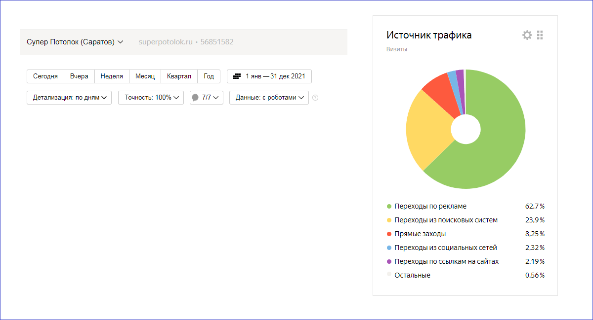 Ниже приводим показатели контекстной рекламы по данному проекту за 2021 год: